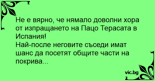 Не е вярно, че нямало доволни хора от изпращането на Пацо Терасата в Испания!