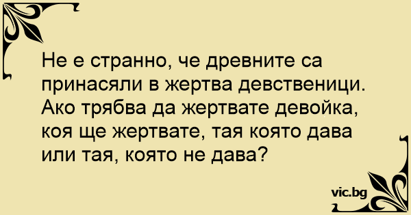 Ако трябва да жертвате девойка, коя ще жертвате, тая която дава или тая, която не дава?