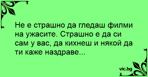 Не е страшно да гледаш филми на ужасите. Страшно е да си сам у вас, да кихнеш и някой да ти каже наздраве...
