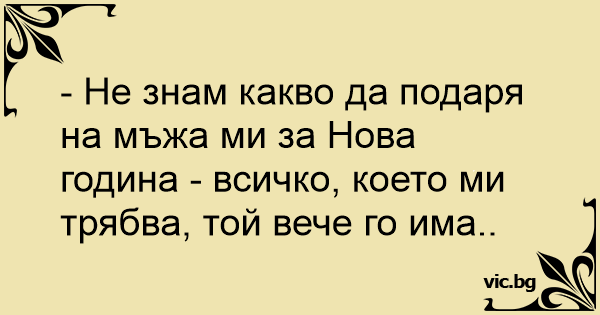 - Не знам какво да подаря на мъжа ми за Нова година - всичко, което ми трябва, той вече го има..