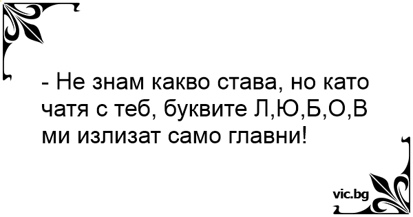 - Не знам какво става, но като чатя с теб, буквите Л,Ю,Б,О,В ми излизат само главни!