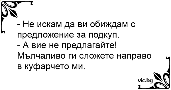 - Не искам да ви обиждам с предложение за подкуп.