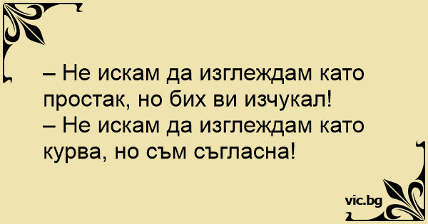 – Не искам да изглеждам като kуpba, но съм съгласна!