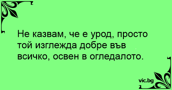 Не казвам, че е урод, просто той изглежда добре във всичко, освен в огледалото.