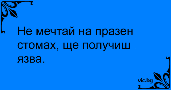 Не мечтай на празен стомах, ще получиш язва.