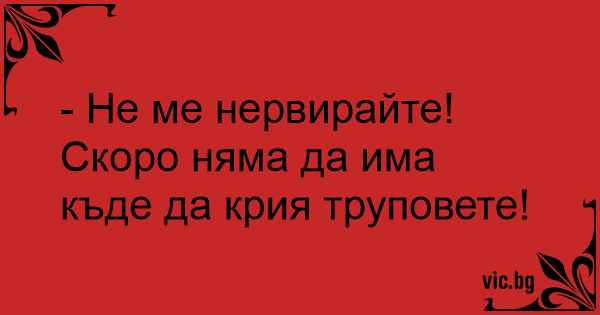 - Не ме нервирайте! Скоро няма да има къде да крия труповете!