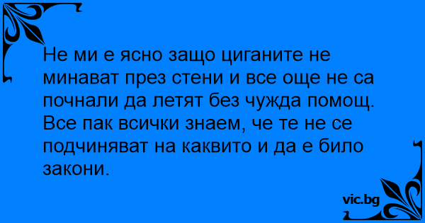 Не ми е ясно защо циганите не минават през стени и все още не са почнали да летят без чужда помощ.