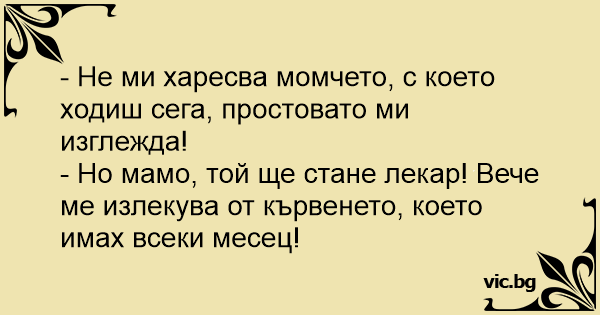- Но мамо, той ще стане лекар! Вече ме излекува от кървенето, което имах всеки месец!