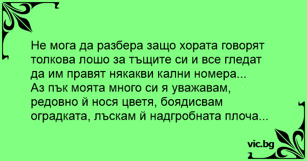 Не мога да разбера защо хората говорят толкова лошо за тъщите си и все гледат да им правят някакви кални номера...