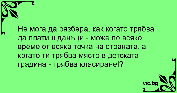 Не мога да разбера, как когато трябва да платиш данъци - може по всяко време от всяка точка на страната, а когато ти трябва място в детската градина - трябва класиране!?