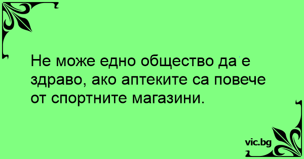 Не може едно общество да е здраво, ако аптеките са повече от спортните магазини.