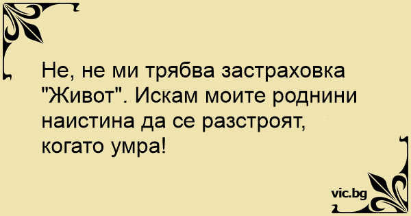 Не, не ми трябва застраховка "Живот". Искам моите роднини наистина да се разстроят, когато умра!