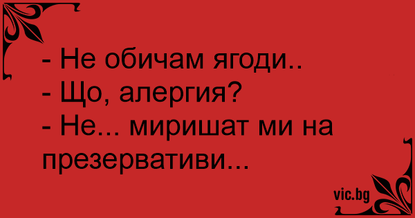 - Я не очень люблю клубнику... - Аллергия? - Нет. Она презервативами пахнет...
