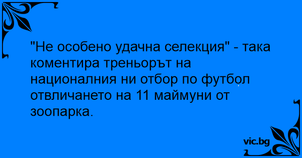 "Не особено удачна селекция" - така коментира треньорът на националния ни отбор по футбол отвличането на 11 маймуни от зоопарка.