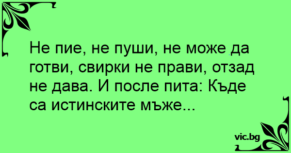 Не пие, не пуши, не може да готви, cbиpkи не прави, отзад не дава. И после пита: Къде са истинските мъже...