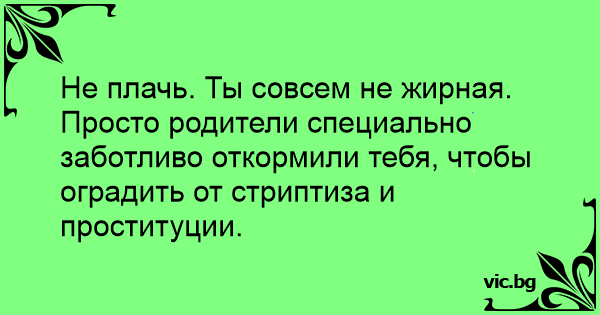 Не плачь. Ты совсем не жирная. Просто родители специально заботливо откормили тебя, чтобы оградить от стриптиза и проституции.