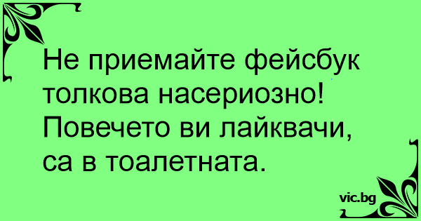 Не приемайте фейсбук толкова насериозно! Повечето ви лайквачи, са в тоалетната.