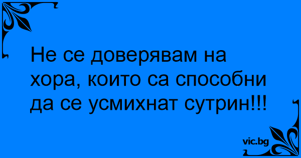 Не се доверявам на хора, които са способни да се усмихнат сутрин!!!