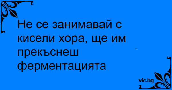Не се занимавай с кисели хора, ще им прекъснеш ферментацията