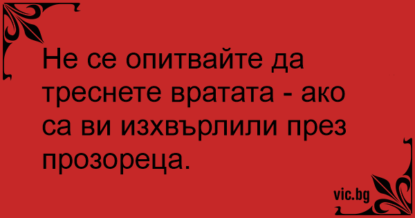Не се опитвайте да треснете вратата - ако са ви изхвърлили през прозореца.