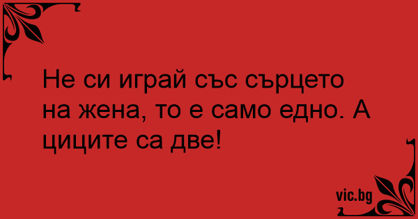 Не си играй със сърцето на жена, то е само едно. А цициte са две!