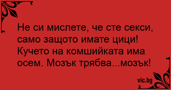 Не си мислете, че сте cekcи, само защото имате цици! Кучето на комшийката има осем. Мозък трябва...мозък!