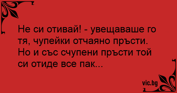Не си отивай! - увещаваше го тя, чупейки отчаяно пръсти.