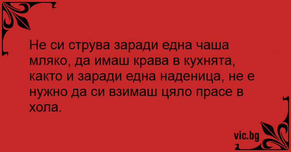 Не си струва заради една чаша мляко, да имаш крава в кухнята, както и заради една наденица, не е нужно да си взимаш цяло прасе в хола.