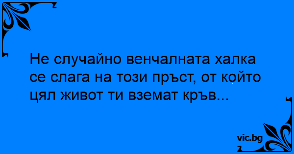 Не случайно венчалната халка се слага на този пръст, от който цял живот ти вземат кръв...