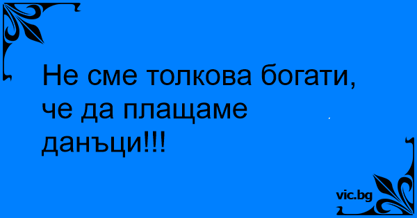 Не сме толкова богати, че да плащаме данъци!!!