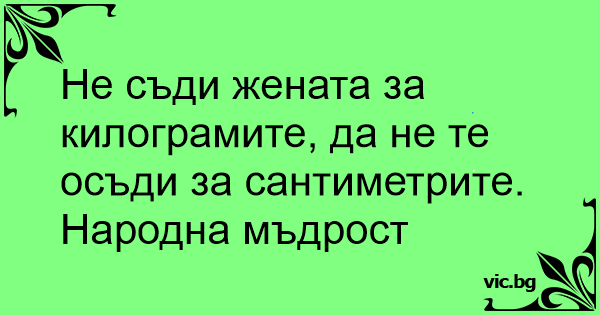 Не съди жената за килограмите, да не те осъди за сантиметрите.