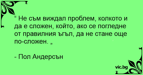 “ Не съм виждал проблем, колкото и да е сложен, който, ако се погледне от правилния ъгъл, да не стане още по-сложен. „