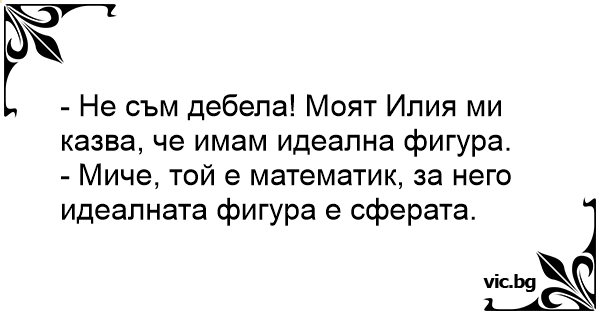 - Не съм дебела! Моят Илия ми казва, че имам идеална фигура.