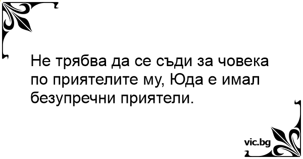 Не трябва да се съди за човека по приятелите му, Юда е имал безупречни приятели.
