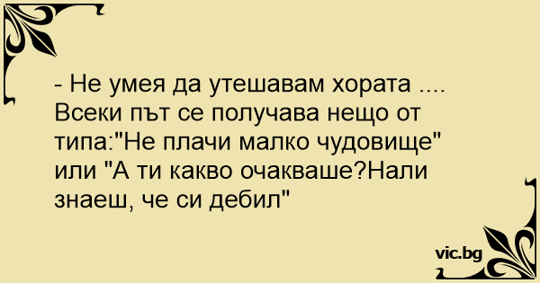 • Вицове от Facebook от нашата страница https://www.facebook.com/www.vic.bg