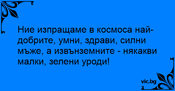 Ние изпращаме в космоса най-добрите, умни, здрави, силни мъже, а извънземните - някакви малки, зелени уроди!
