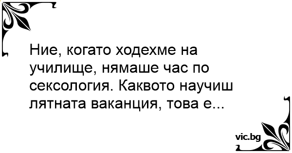 Ние, когато ходехме на училище, нямаше час по сексология. Каквото научиш лятната ваканция, това е...