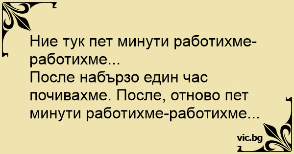 После набързо един час почивахме. После, отново пет минути работихме-работихме...