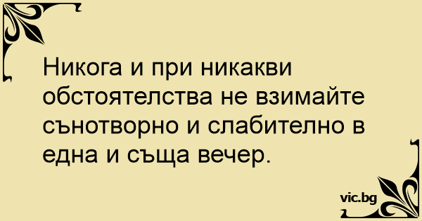 Никога и при никакви обстоятелства не взимайте сънотворно и слабително в една и съща вечер.