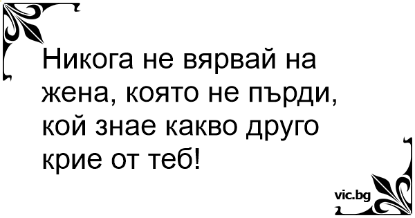 Никога не вярвай на жена, която не пърди, кой знае какво друго крие от теб!