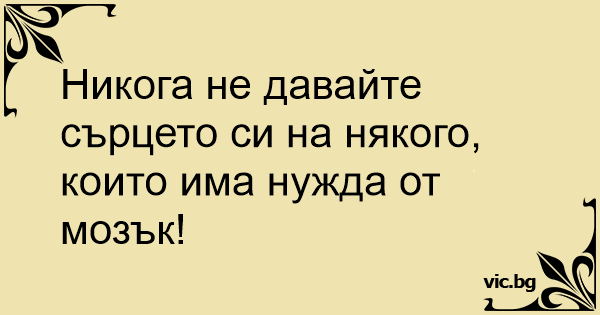 Никога не давайте сърцето си на някого, които има нужда от мозък!