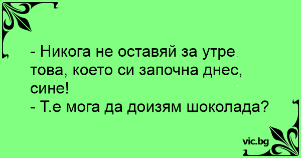 - Никога не оставяй за утре това, което си започна днес, сине!