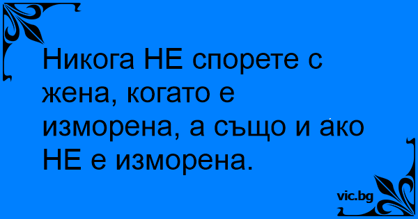 Никога НЕ спорете с жена, когато е изморена, а също и ако НЕ е изморена.