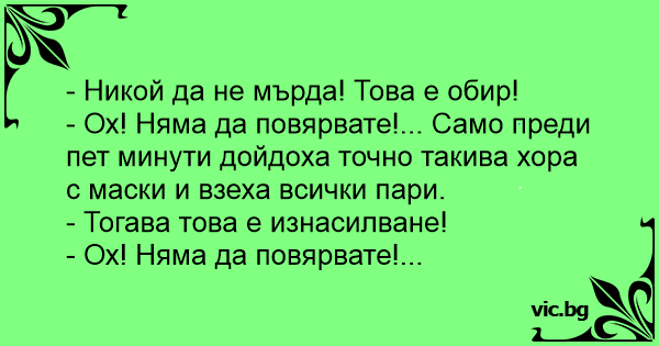 • Вицове от Facebook от нашата страница https://www.facebook.com/www.vic.bg