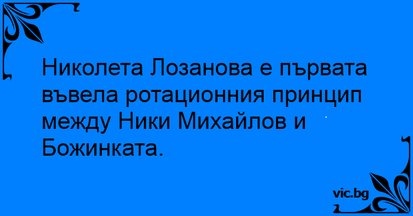 Николета Лозанова е първата въвела ротационния принцип между Ники Михайлов и Божинката.