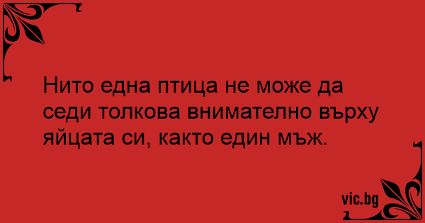 Нито една птица не може да седи толкова внимателно върху яйцата си, както един мъж.