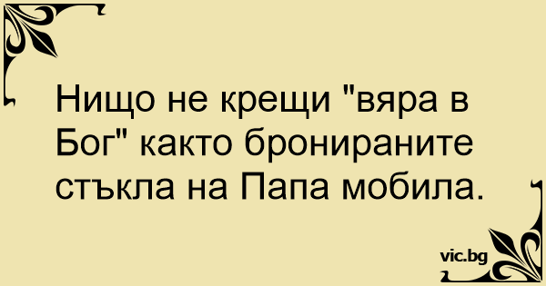 Нищо не крещи "вяра в Бог" както бронираните стъкла на Папа мобила.<br />