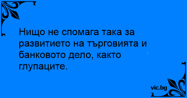 Нищо не спомага така за развитието на търговията и банковото дело, както глупаците.