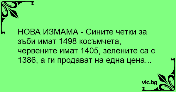 НОВА ИЗМАМА - Сините четки за зъби имат 1498 косъмчета, червените имат 1405, зелените са с 1386, а ги продават на една цена...