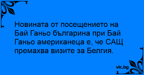 Новината от посещението на Бай Ганьо българина при Бай Ганьо американеца е, че САЩ премахва визите за Белгия.